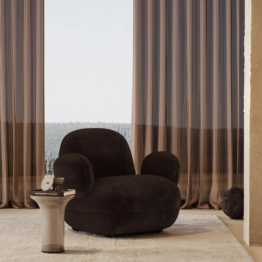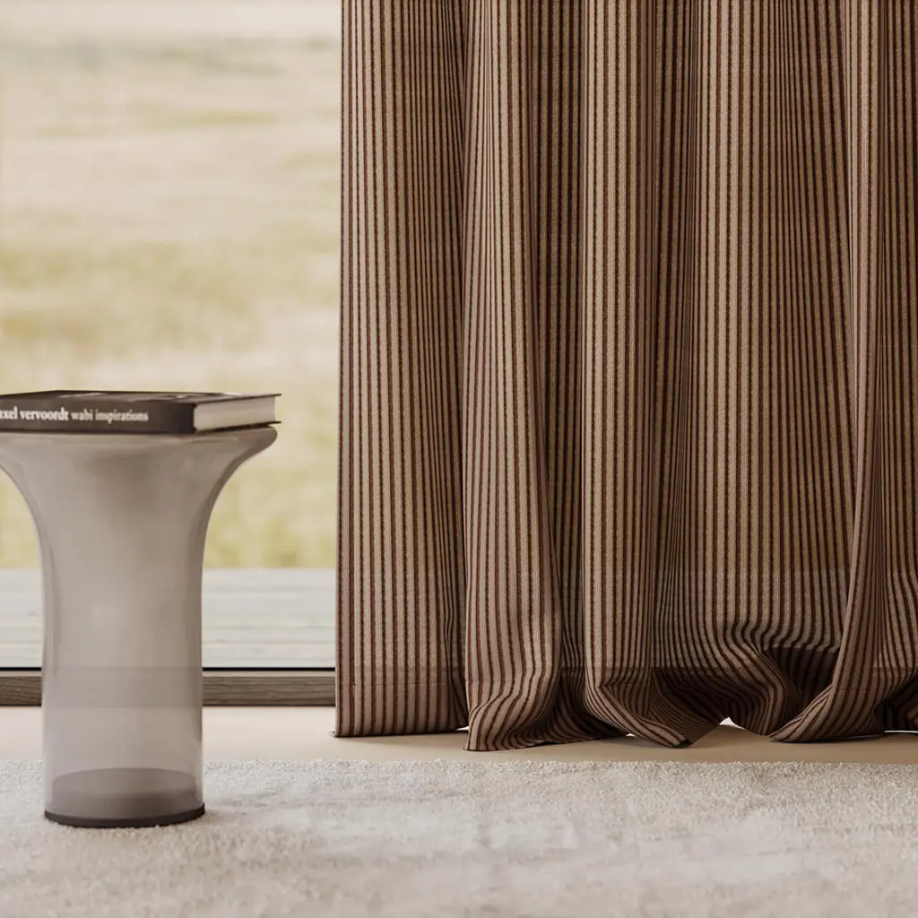 Composizione femminile. Svea, il tessuto più delicato della collezione, porta leggerezza alla finestra. Le sue righe tessute in direzione dell?ordito vengono ribaltate in un motivo verticale, ammorbidito dall’uso di filati testurizzati che creano una linea più definita e dritta. Il pregiato filato bouclé bianco conferisce alla semitrasparenza di Svea una texture delicata che si distingue elegantemente in controluce. Abbinato a cinque opzioni di sfondo in tonalità neutre nordiche, il tessuto crea contrasti a volte delicati, a volte sorprendenti. Una scelta ideale per decorazioni ariose e morbide.