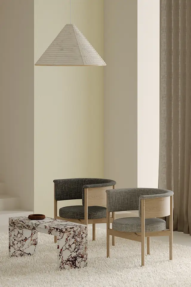 Der Abendstern. Alvaro bringt als natürliche Wollmelange mit raffiniertem Twist textile Glanzlichter aufs Polster. Dabei spannen die Metallgarne seiner vier Farbvarianten den Bogen von den goldenen Reflektionen der aufgehenden Sonne bei Bone und Graphit bis zu den kühleren Silberakzenten des untergehenden Mondes bei Natural und Silver. Ihr feiner Schimmer blitzt im dicken Wollgarn auf und verleiht dem weichen und mit 70.000 Scheuertouren gleichzeitig sehr resistenten Stoff seine elegante Note.