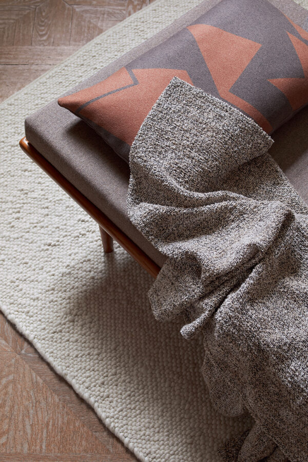 Woollen and sustainable. The Bodo Sperlein edition for nya nordiska is rounded off by Boom, an innovative upholstery fabric that can also serve as a heavy drapery. The print design on recycled wool combines the look and feel of its natural material with a sense of sustainability. Combined with a synthetic fibre component, this drapery and upholstery fabric boasts exceptional durability. Its graphic design corresponds to that of Blitz and can be made up without pattern repeats.