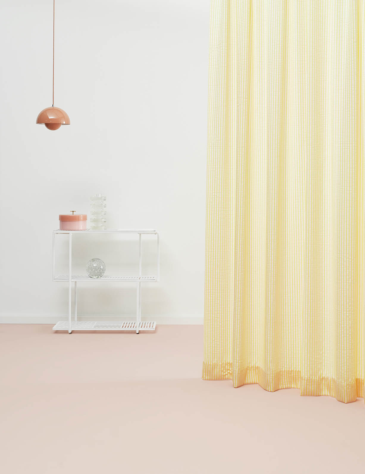Cette rayure l’inscrit dans du contemporain. En alternant des rayures colorées de deux centimètres à du blanc ou à des tons tendance, Minas met en scène sa clarté graphique de façon moderne. Tout comme l’uni Plana, il est lavable, facile à entretenir et parfait pour les grandes hauteurs de plafond et est donc idéal pour l’aménagement de l’espace textile. En 18 combinaisons de couleur, Minas met des accents frais, à la demande ou en coordination de couleur avec Plana.